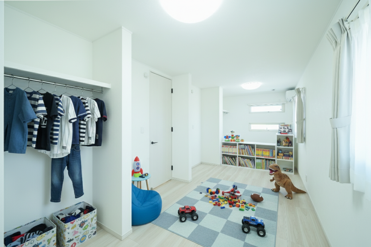 今は広々と、将来はそれぞれの個室として使える、長く快適に暮らせる工夫です。