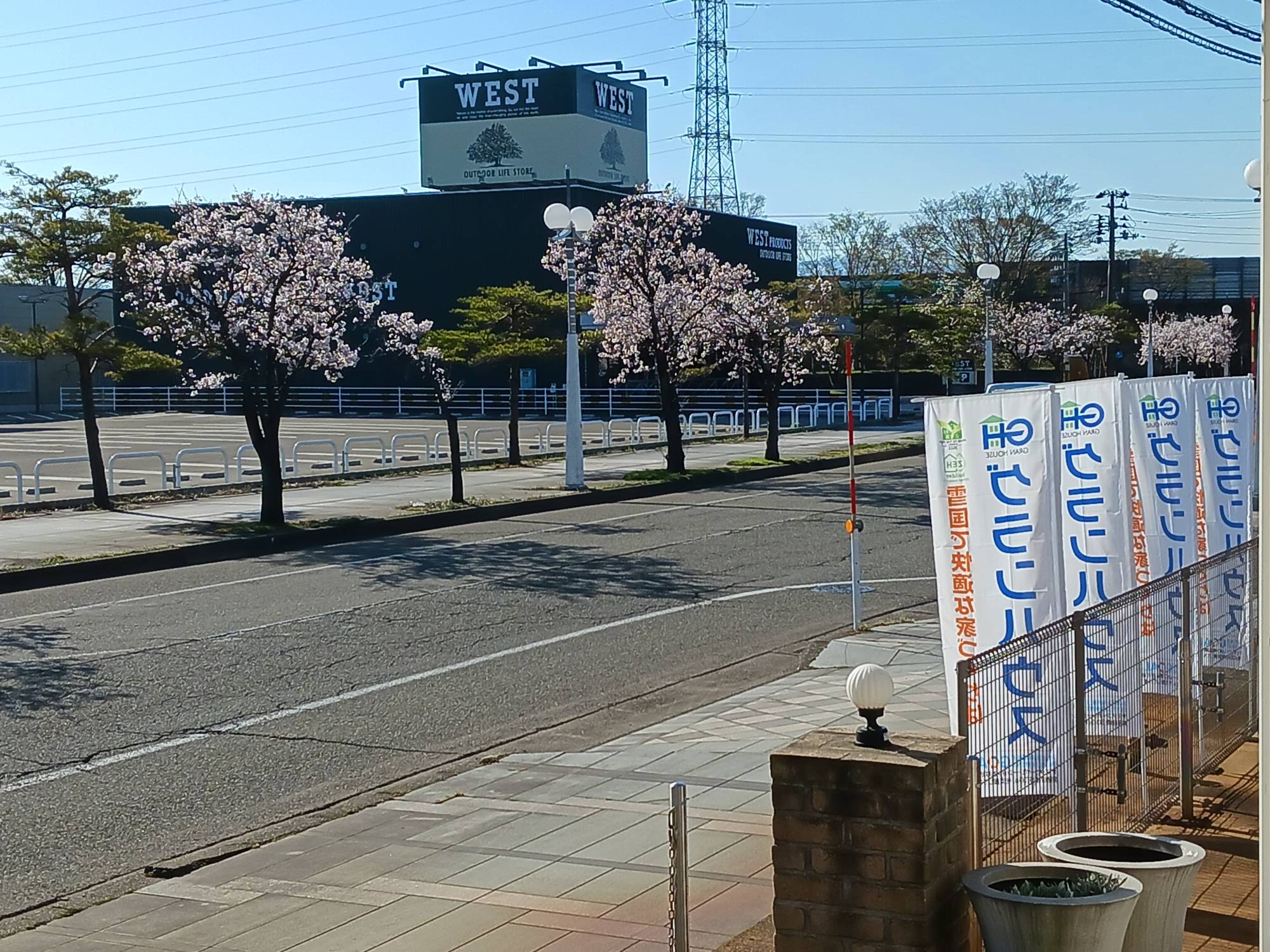 (グランハウス上越店前の桜も満開です!!…4/6 月曜日)