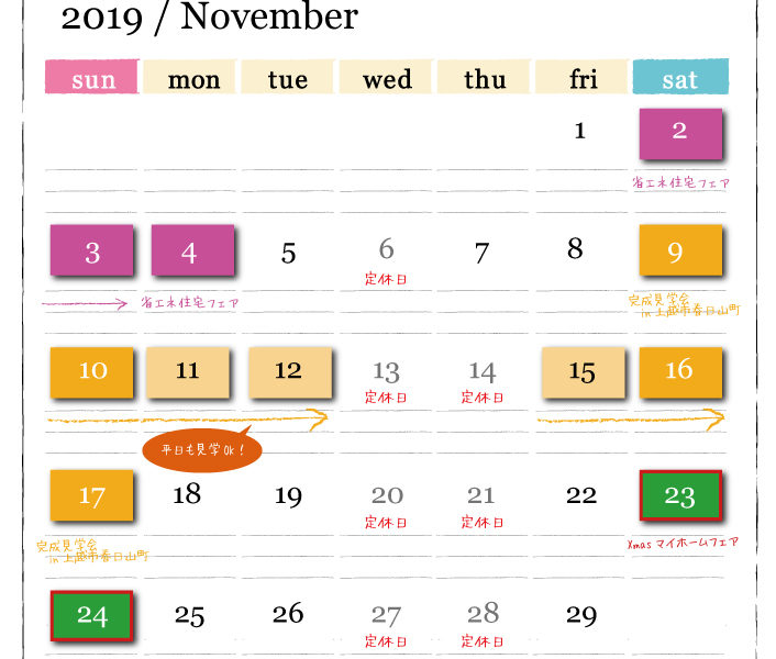 ★定休日、イベントのご案内★11月