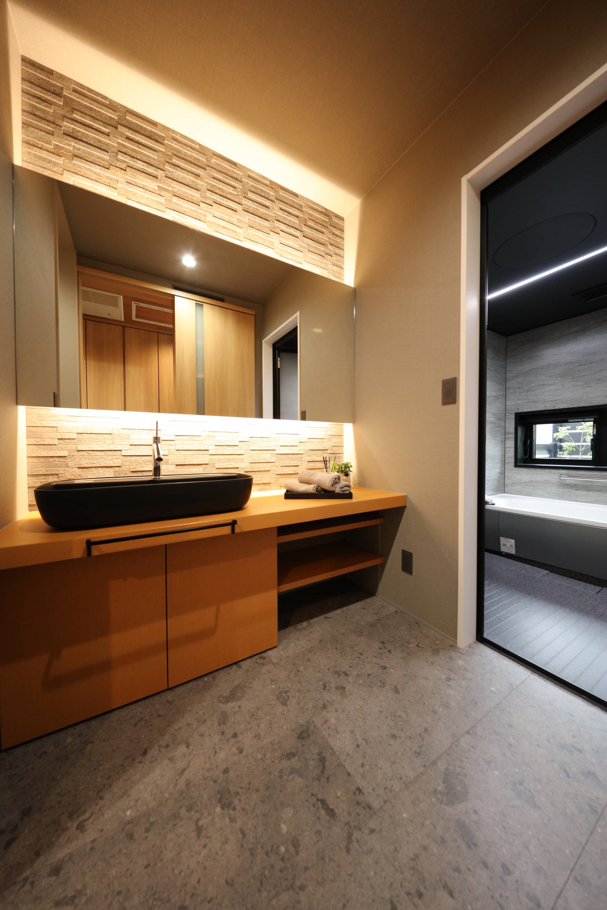 洗面脱衣室まで温度が行き届く全館暖房の住まい。