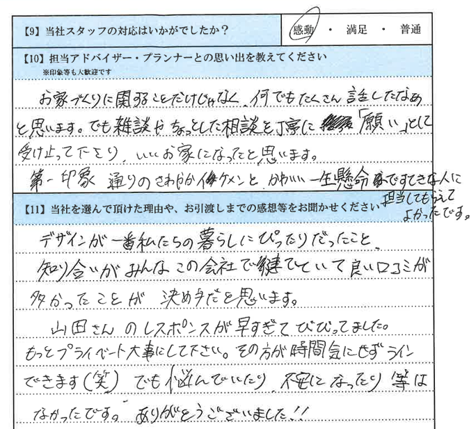 知り合いがみんなこの会社で建てていて良い口コミが多かったことが決め手だと思います。