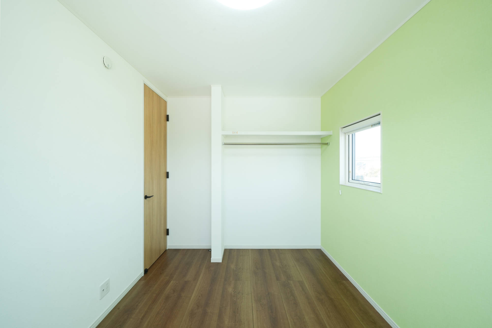 子供部屋はライトグリーンのアクセントクロスを使用しています。