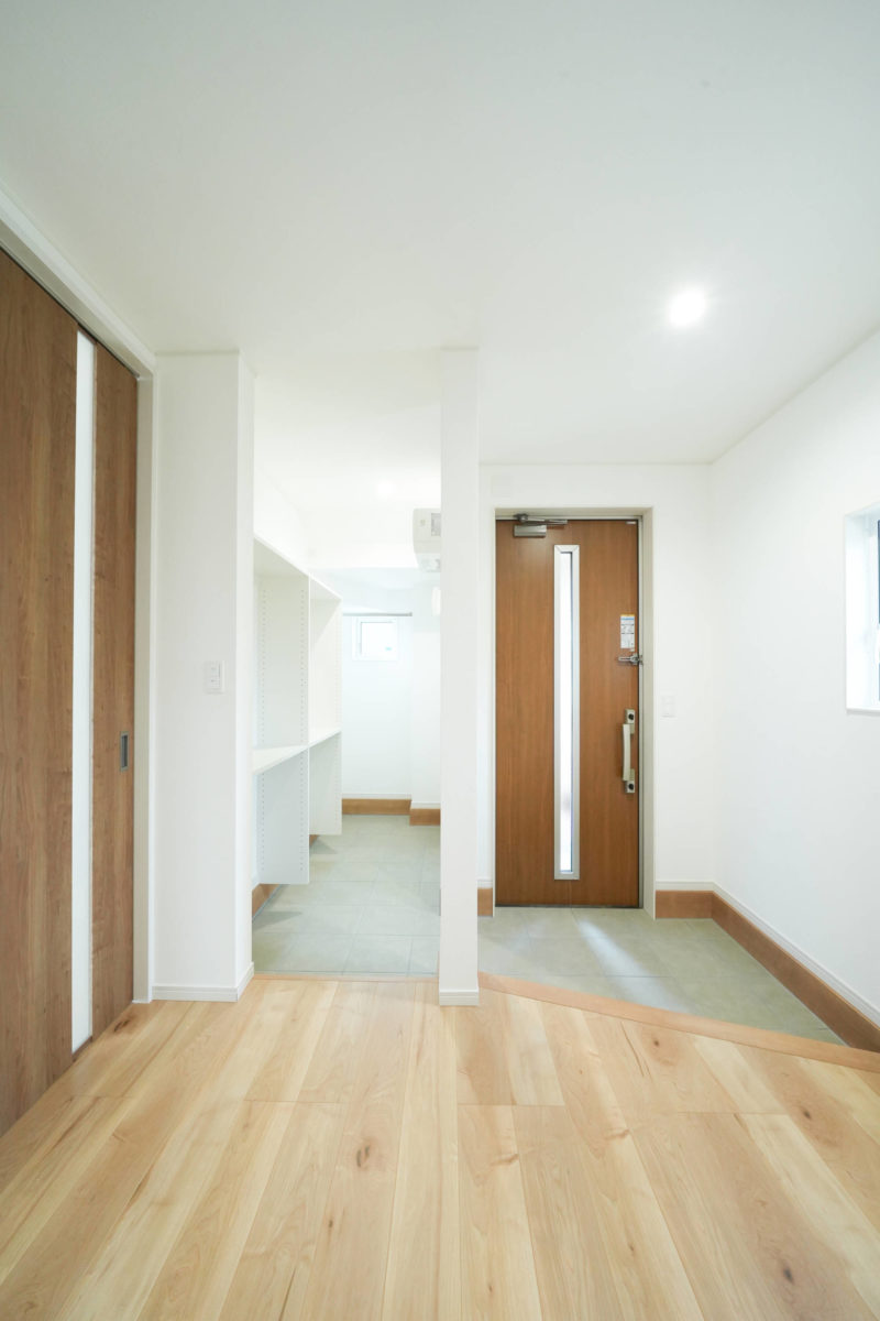 シューズクロークの奥にはコート掛けを用意しました。