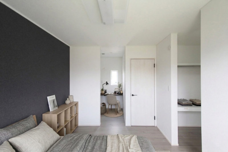 落ち着いたアクセント壁紙の主寝室。