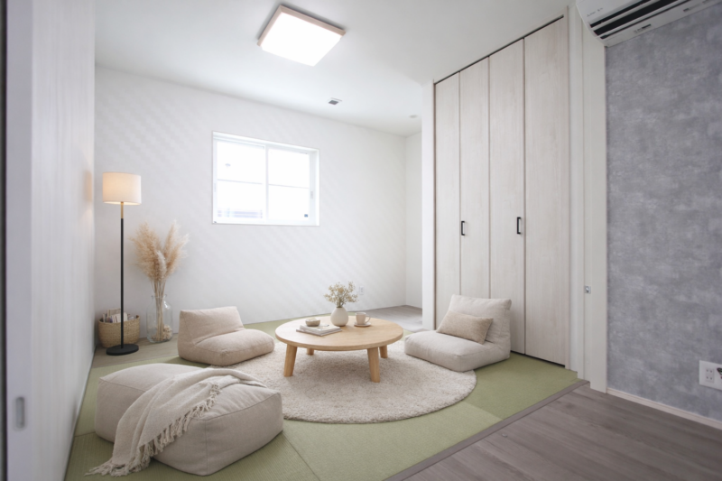 扉で空間を仕切らず、お子さまの遊び場や来客時にも活躍する畳スペース。
