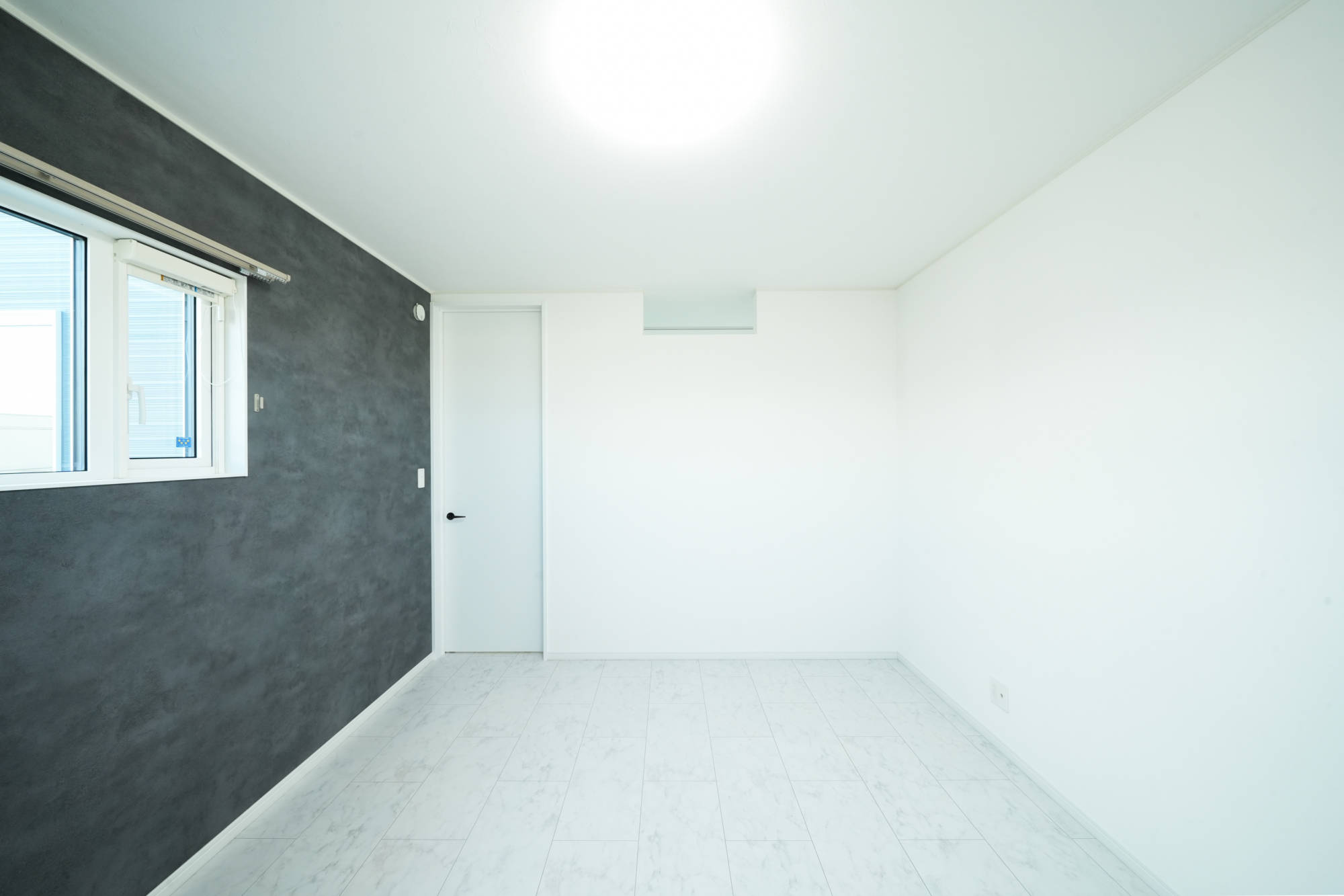主寝室はチャコールグレーのクロスを使用しカッコイイ雰囲気に。