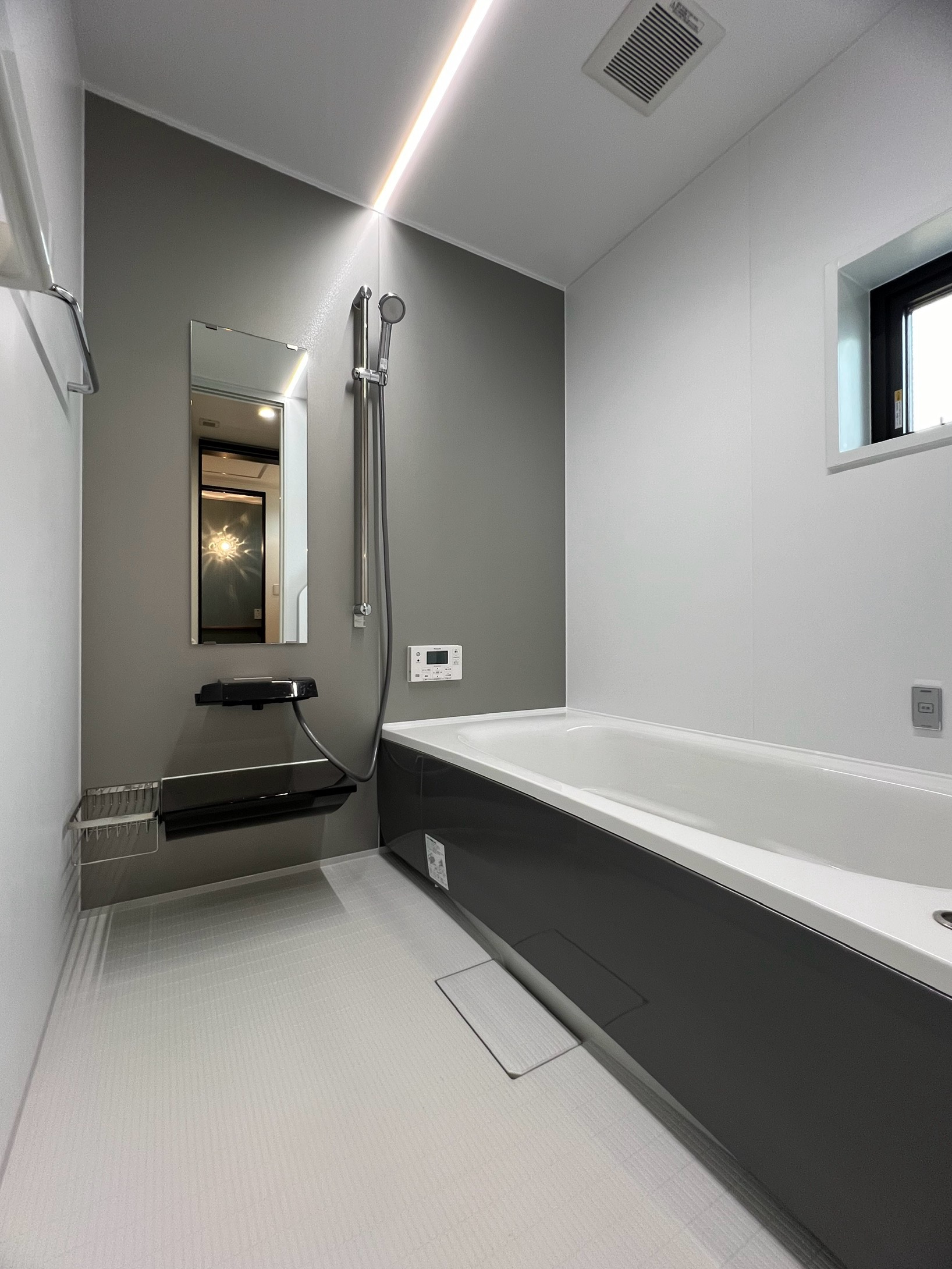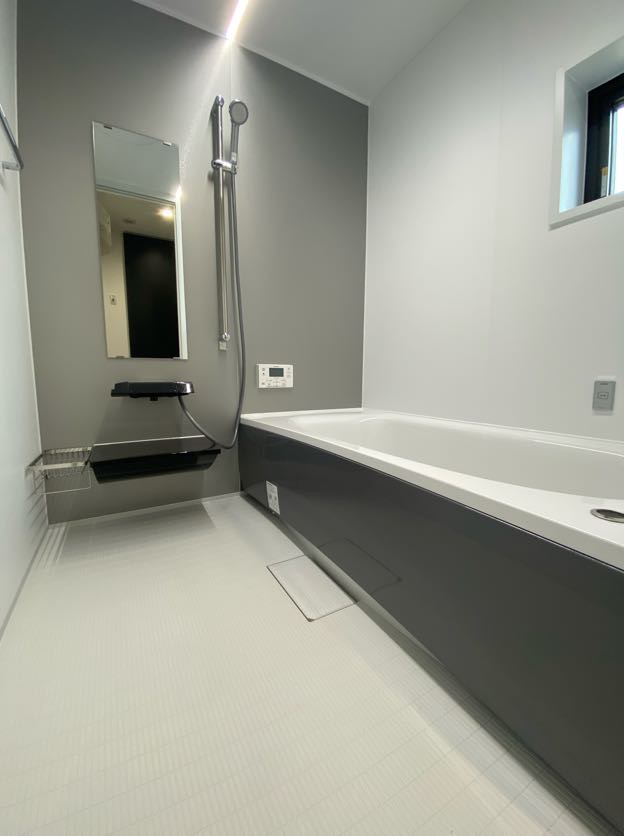 黒基調のホテルライクで洗練された浴室。